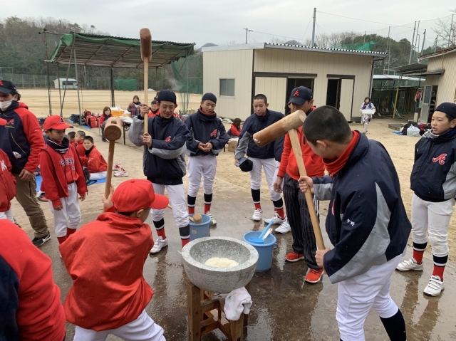 参拝後はシニアグランドにてリトルの皆さんをお招きし、餅つき大会等を行い、リトルとシニアで交流を深めました。