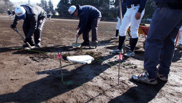 在団生の父たち数名で協力し、無事にベースの入れ替え作業を終えることができました。