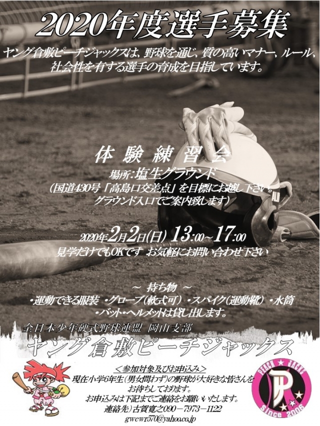※ヤング倉敷ピーチジャックスへの入団は男女を問いませんが、倉敷ピーチジャックスは女子部も活動をしております。お気軽にお問合せ下さい。