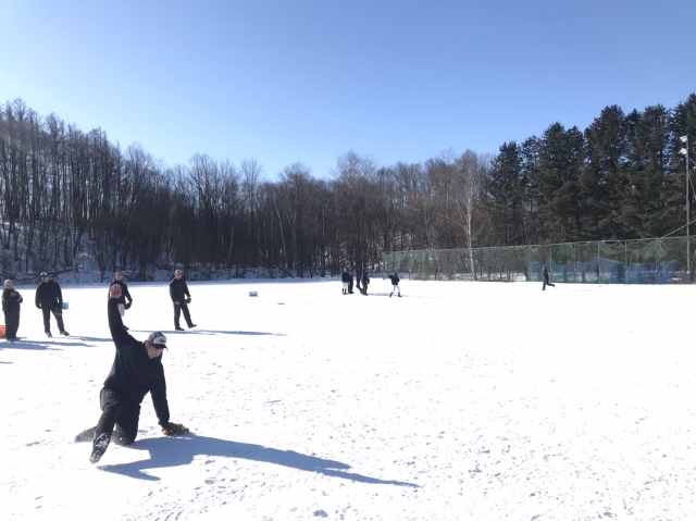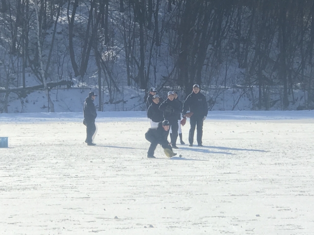 今日の練習も、雪中グラウンドにてノック、フリーバッティングと練習しております⚾️