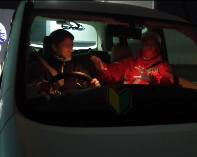 練習を手伝いに来てくれた3期生飯川(先日めでたく運転免許取得)の運転で