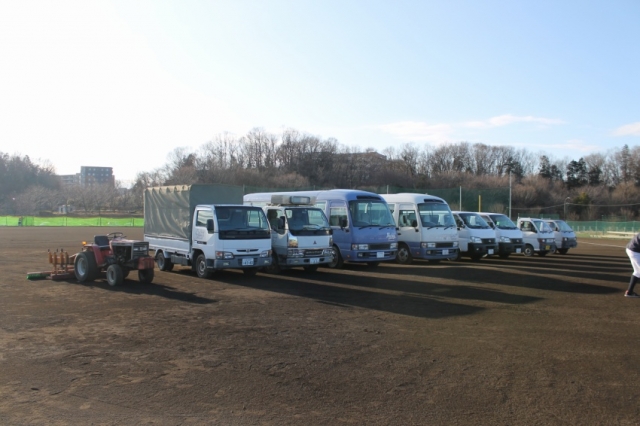 今年の体験に来られている父母の皆様からご質問が多いのが、メインで使用している鑓水球場のグランドの件と1年生が現在60名を超える人数で練習環境はどうなんですかというような内容ですが、まず鑓水球場に関してですが、毎年1年毎の更新ではありますが、本年4月からの来年度も昨年と同様に使用できる見込みですし、併せて当シニアでは、学年毎の練習量、練習の質を保つために、近隣のグランドもお借りさせて頂く中で練習を行っておりますので、何卒、グランド環境に関しましてはご安心くださいませ。次に入団人数が多いというご懸念のほうですが、当チームでは基本は各学年毎に分かれての練習となっており、その中で昨年は現在の1年生の練習場所を同時に最大3カ所借りて選手を分散して練習を行っております。あるいは、半分の選手が遠征での練習試合を行い、半分が練習という具合に入団された選手達にできる限り満足がいくように各種調整を行っております。ちなみに添付の写真は、当チームが保有する車両になります。遠征用にシニアバスも2台配備、荷物運搬車は、キャラバン2台、2t車1台、幌車1台、それ以外にも軽トラも所有しております。このようなチームで所有しております車も駆使いたしまして、できる限り、父兄の皆様にご負担のないような配慮もさせて頂いております。おかげさまで春の選抜全国大会も5年連続で出場させて頂けるとになり、本年もますますチーム全体で活躍できればと思いますので、まだチームを決められていない選手、父母の皆様、今週末も来週末も体験を受け入れておりますので、ぜひ一度、体験にご参加くださいますようお願い申し上げます。