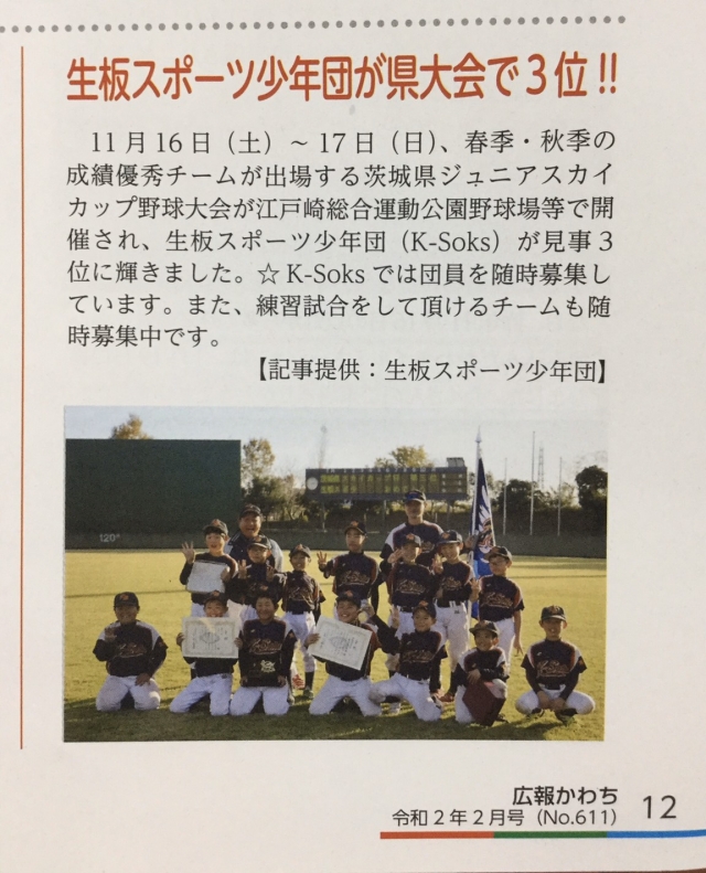 地元河内町の広報かわち2月号に昨年11月に行われたジュニアスカイカップの情報を掲載して頂きました‼️