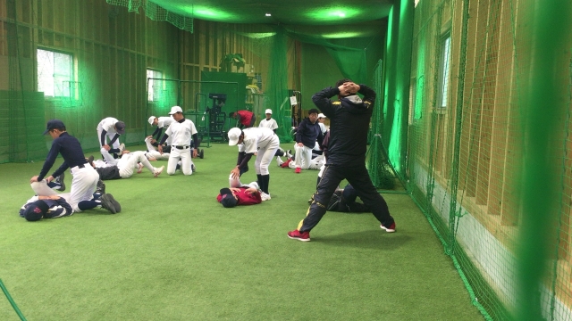 球団が提携している室内練習場で
