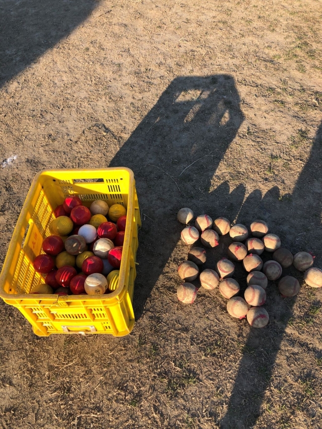 > 頂いたボール・お母さんたちに手伝って頂きティーボールとして再生です