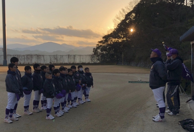 優しい朝日がグランドに注ぐ中、豊橋ボーイズ6年生最後の大会が幕を開けました。