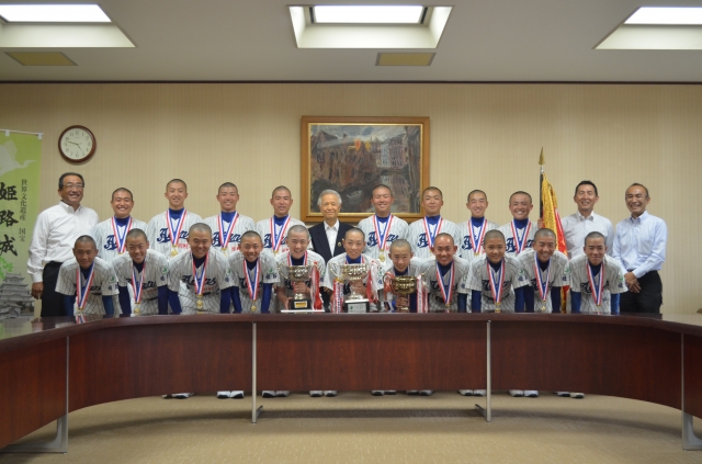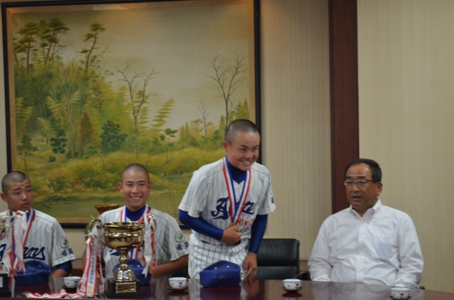 5月27日午後、ご公務お忙しい中、第23回ヤングリーグ(約180チーム)春季全国大会優勝報告(2回目)と第9回全日本中学野球選手権大会・ジャイアンツカップ(3年ぶり3回目)の出場報告に石見姫路市長を表敬訪問させて頂きました。