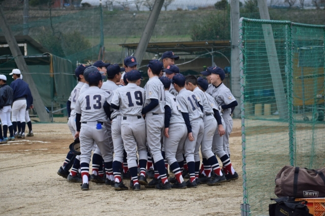 3月29日(日)新型コロナウイルス感染症の影響で試合が延期になっていました関西連盟春季大会奈良ブロック予選の初戦に挑みました。野球ができる喜びを選手達は噛みしめ強豪桜井リトルシニアさんと対戦しました。4回までは1点を争う緊迫した試合展開でしたが、4回裏に強力打線につかまり一挙にゴールドゲームになってしまいました。悔しい結果になりましたが選手達の成長した面も見ることができ、次週からの敗者復活戦を制し第3代表を勝ち取ってもらいたいと思います。前日からの雨でグラウンドは水たまりができているなか、グラウンド整備にご尽力くださった桜井リトルシニアの皆様、また大会開催にあたってご調整くださった大会関係者の皆様本当にありがとうございました。