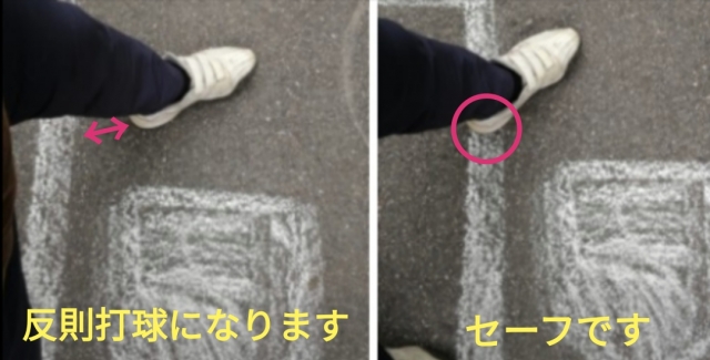 参考までにラインに足の一部がかかっていたら