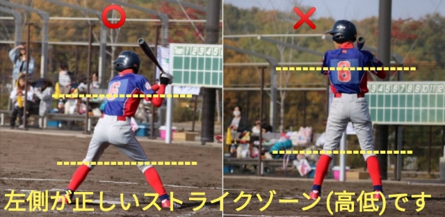 このストライクゾーンは打者が投球を打つための姿勢で決定されるべきである(画像参照)