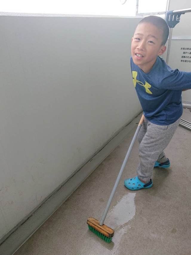 ベランダ掃除する