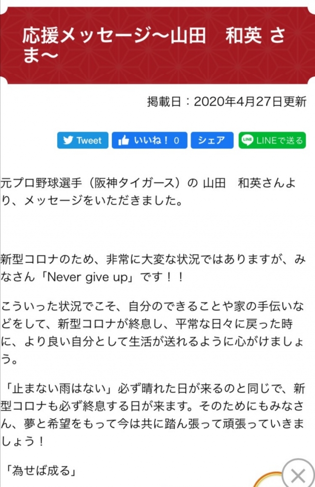 出身著名人としてコメント寄せられた山田監督が