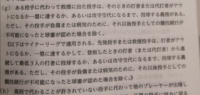 打者一人で交代のワンポイントリリーフを禁止とする(打者3人又は攻守交代まで続投義務)ルール改正が