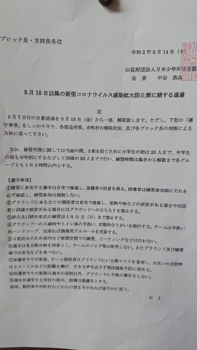長い自粛期間を抜けて、ようやくチームとして活動が出来るようになりました。野球が出来る喜びを噛みしめて、いざ再始動‼️
