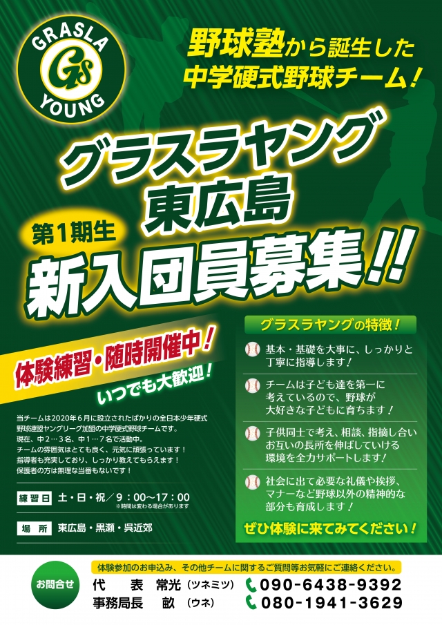 グラスラヤング東広島 -一般社団法人 全日本少年硬式野球連盟 Young League-