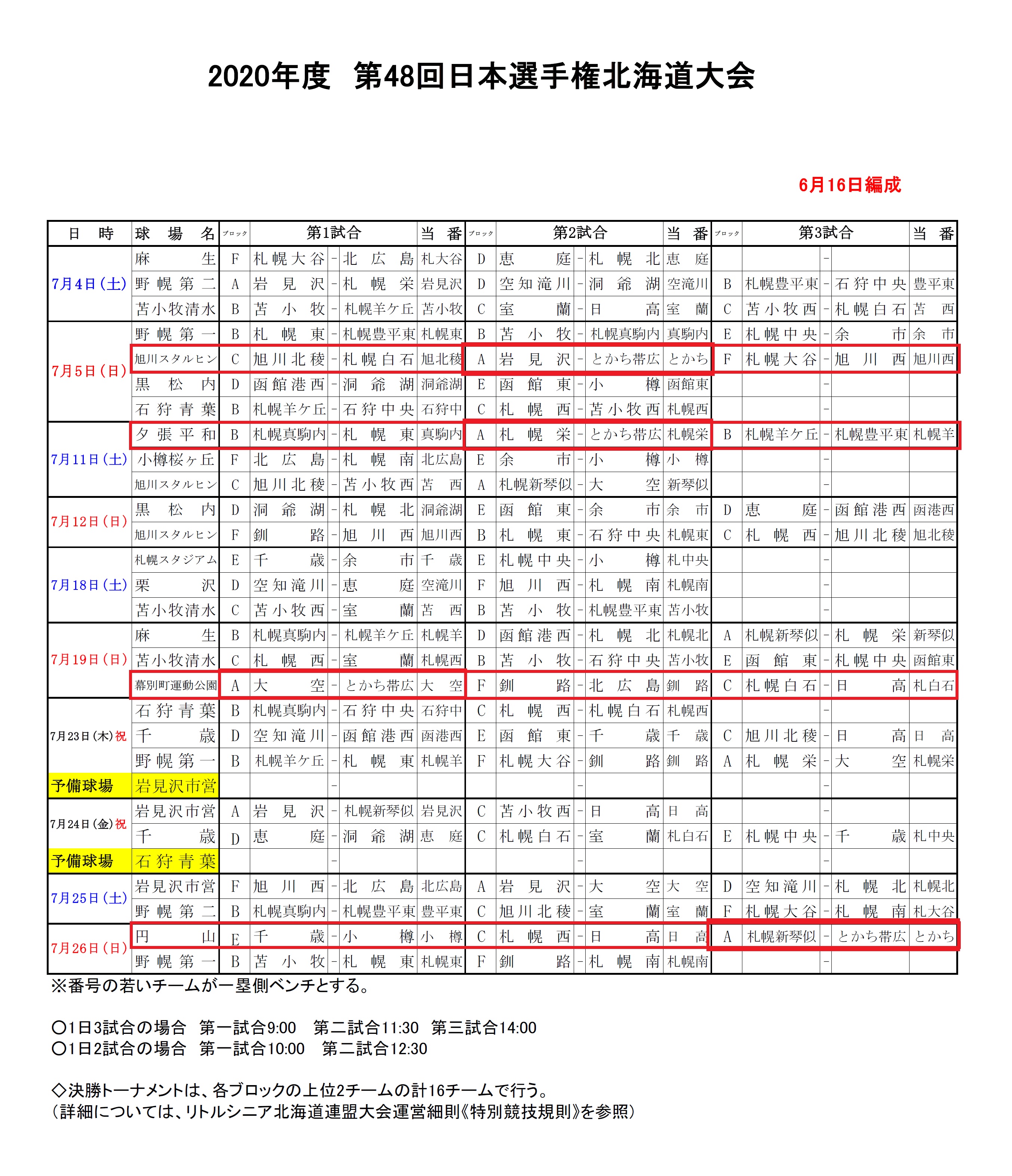 「とかち帯広リトルシニア」6/16現在試合日程