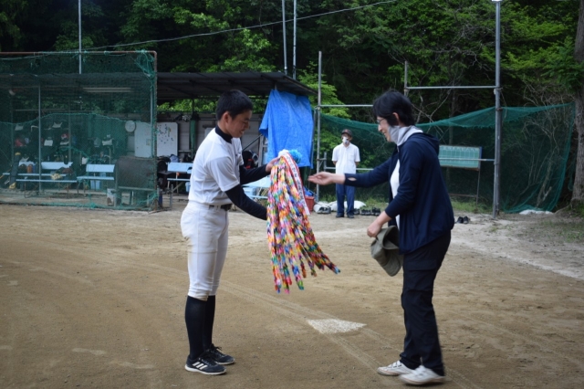 勝利を祈願し保護者から千羽鶴を選手達に渡しました。
