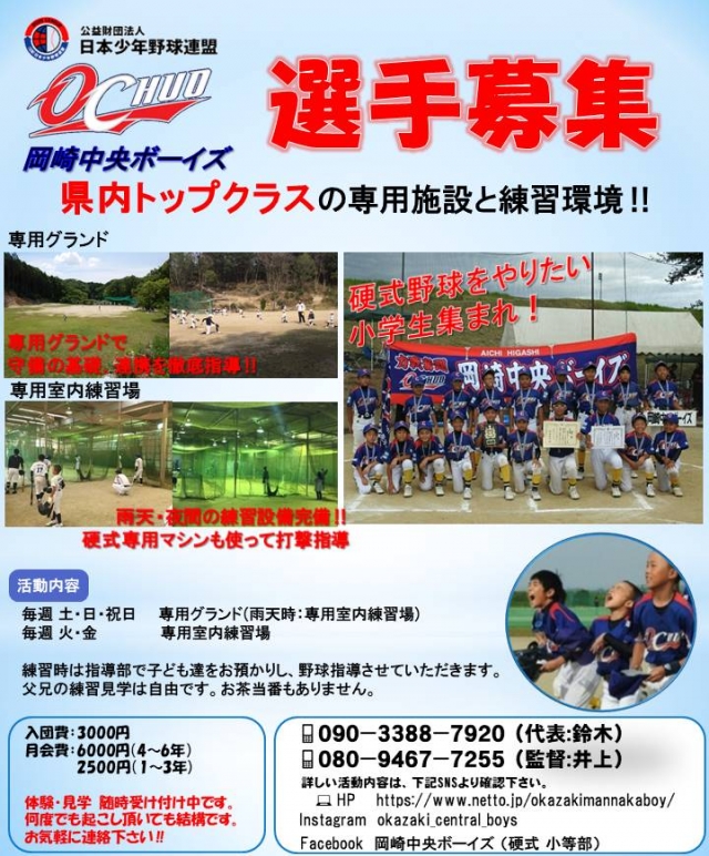 岡崎中央ボーイズでは選手を募集しています。