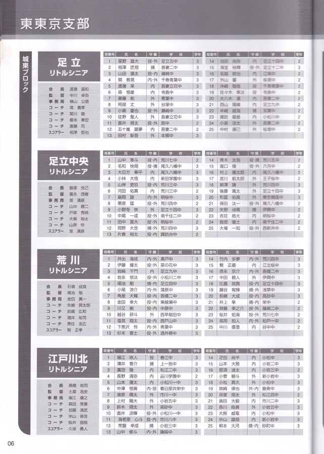 過去のベスト4も掲載があり、荒川リトルシニアは2010年春にベスト4、2014年秋に準優勝、2015年春に優勝と諸先輩方は輝かしい成績を収めています。