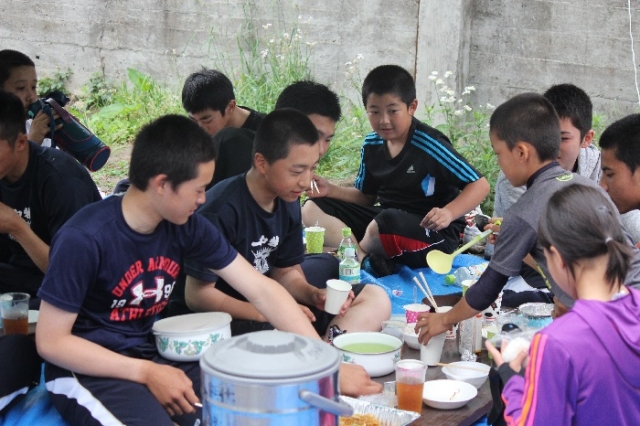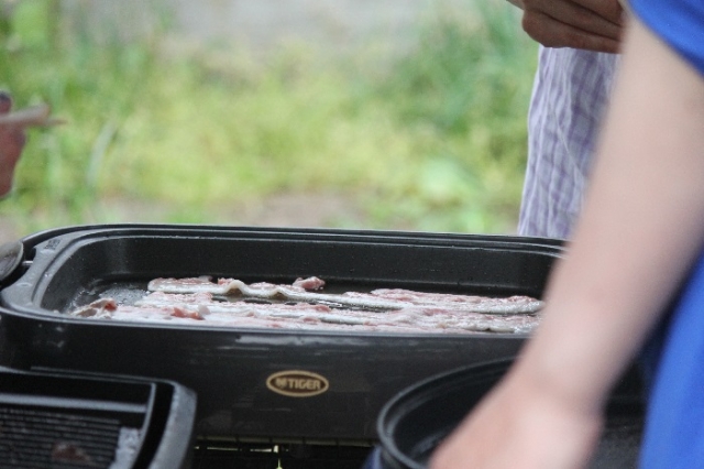 各家庭の1品料理と焼肉で楽しい時間をすごしました。