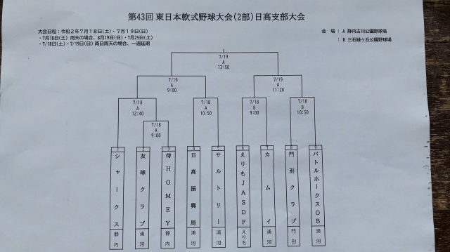 > 第43回東日本軟式野球大会2部日高支部大会