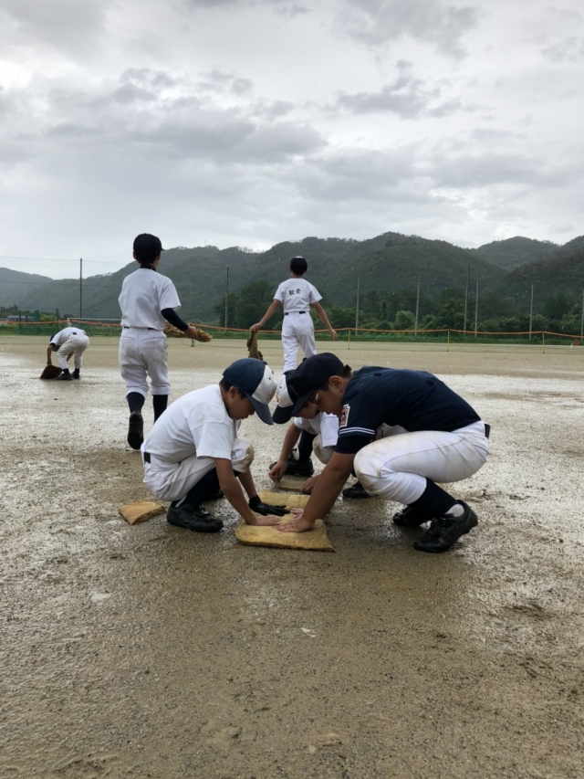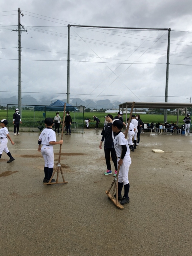 練習するためにグランド整備、