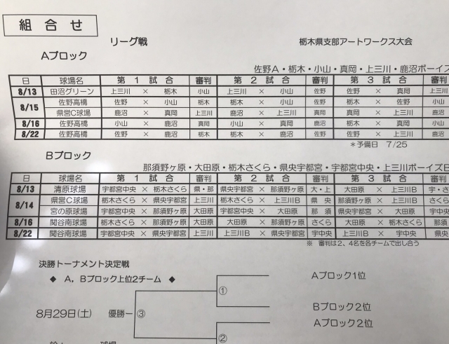 8/13,14,22の3日間行われる予選リーグの組み合わせが決まりました。