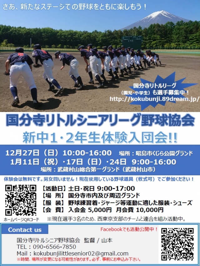 | 下記日程にて体験入団及び説明会を実施致します。 |