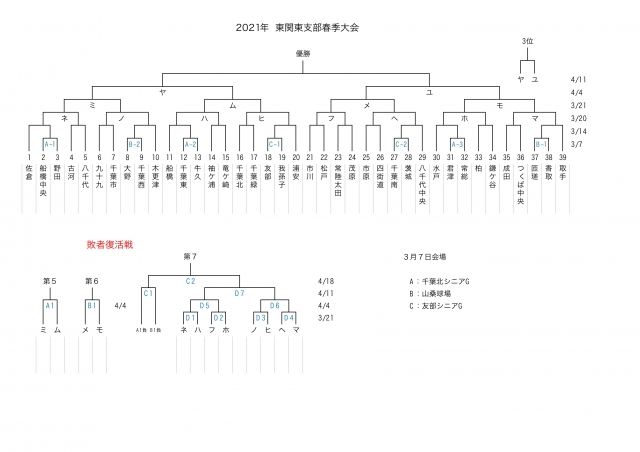 3月7日から始まる春季東関東支部大会のトーナメント表です。