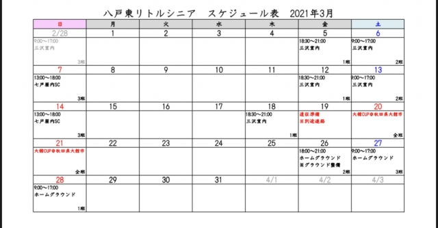 2021年3月 八戸東リトルシニアの練習計画です。