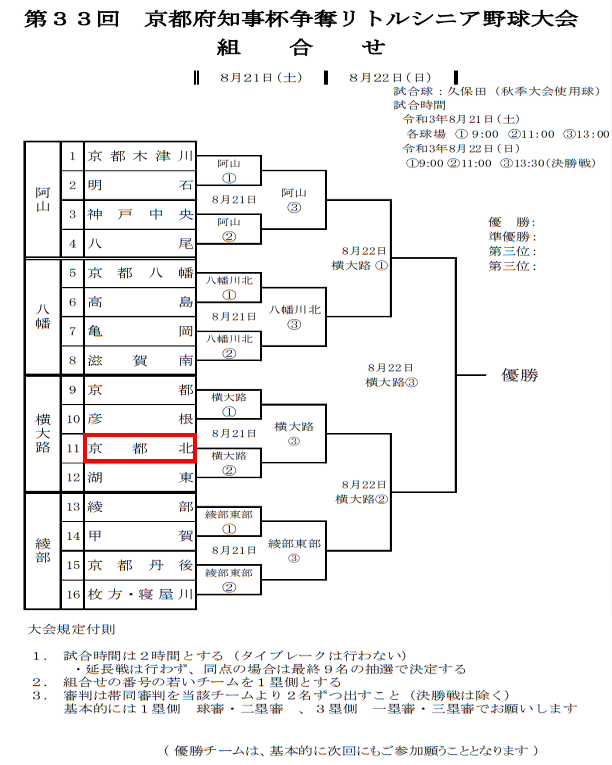 第33回京都府知事杯 組合せ決定!