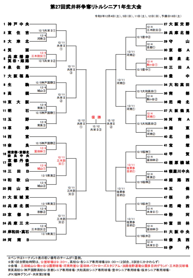 第27回 武井杯争奪リトルシニア1年生野球大会 組合せ決定!