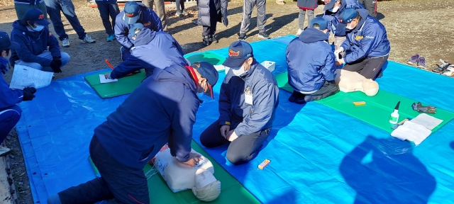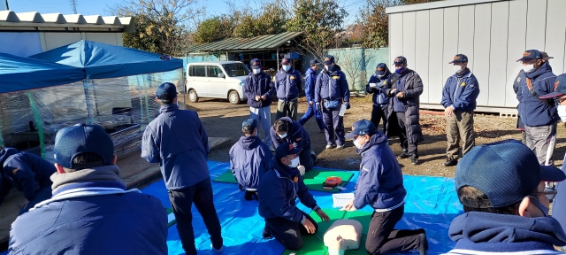 氷点下の朝となり、寒空に中、応急措置とAED使用研修を開催しました。