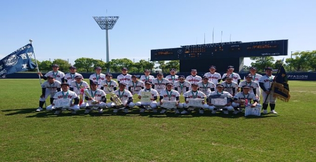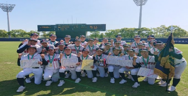 4月30日(土)決勝 2日間、生憎の雨により順延していた決勝戦。前日の雨が嘘のような晴天の中、決勝戦が行われました。五條シニアと対戦し1対0で勝利を収め、春季関西大会初優勝を成し遂げました。試合は、1回表に1点を先制したものの、3回表の満塁のチャンスを活かすことができず…。その後出塁するもなかなか得点ができない中、相手には三度も満塁のチャンスを作られ、終始ヒヤッとする場面が多々ありました。7回裏も同様に2アウト満塁まで攻められ一打サヨナラも覚悟したところですが、最後の打者をサードゴロに仕留め、優勝という形でこの大会を締めくくることができました。数週間後には、日本選手権大会が始まります。この結果に満足することなく、ここからまた気を引き締めて練習に取り組んでいきましょう!