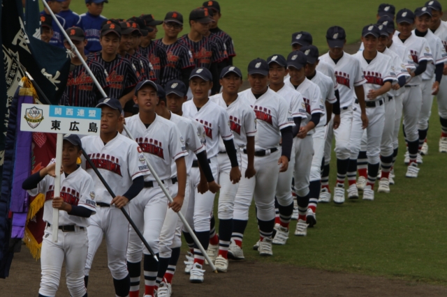 昨年、先輩たちが勝ち取った優勝旗を手に、堂々と行進。