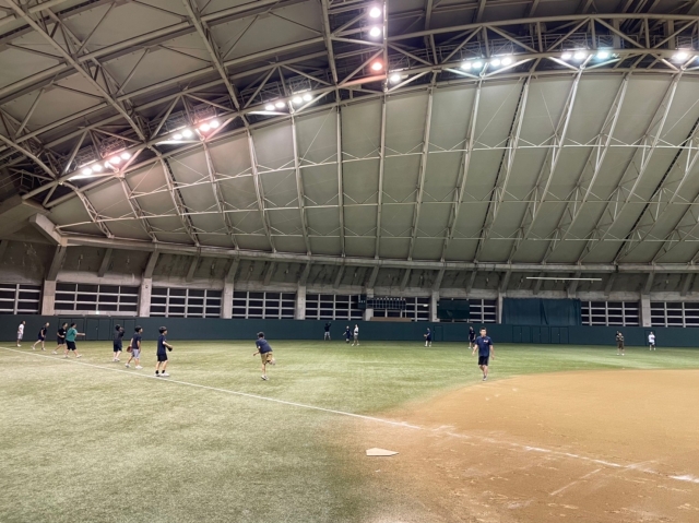 台風の影響により、残念ながら初日・二日目と雨続きとなってしまい ましたが、ドーム型球場や屋内練習場、また体育館といった素晴らしい屋内施設に恵まれ、おかげさまで充分な練習量を確保する事が出来ました。