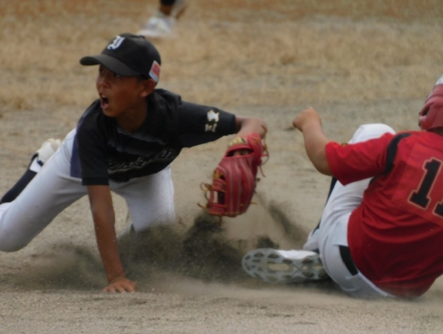 常勝軍団の加佐登打線を抑える事が出来るのかを注意深くみていた1回表、2本の長打で1点を先制されてしまいます。2回にも2本のヒットを浴び1点を取られ、0-2と苦戦を強いられます。