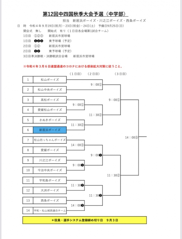 予定 第12回中四国秋季大会予選(9/17更新)