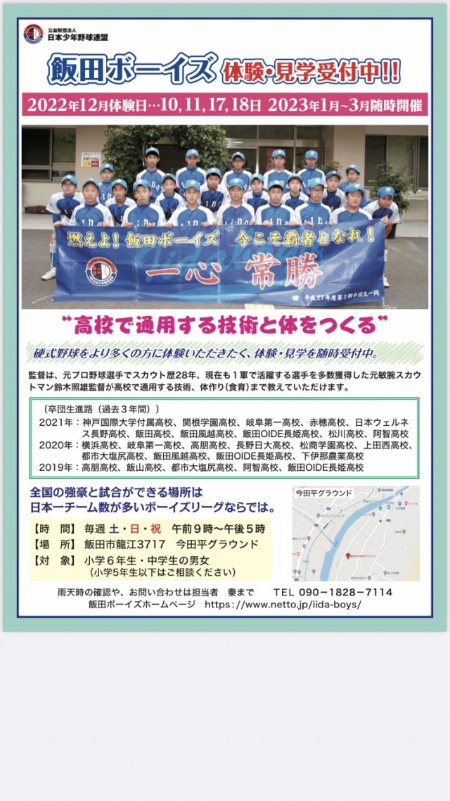 飯田ボーイズ ★2022-2023体験会日程!!