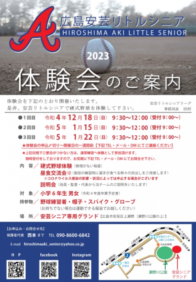 の3日間、安芸シニアでは体験会を開催します。