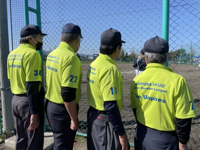 日頃、お世話になっている審判団へ、中央区大会用のユニフォームを新調しました。