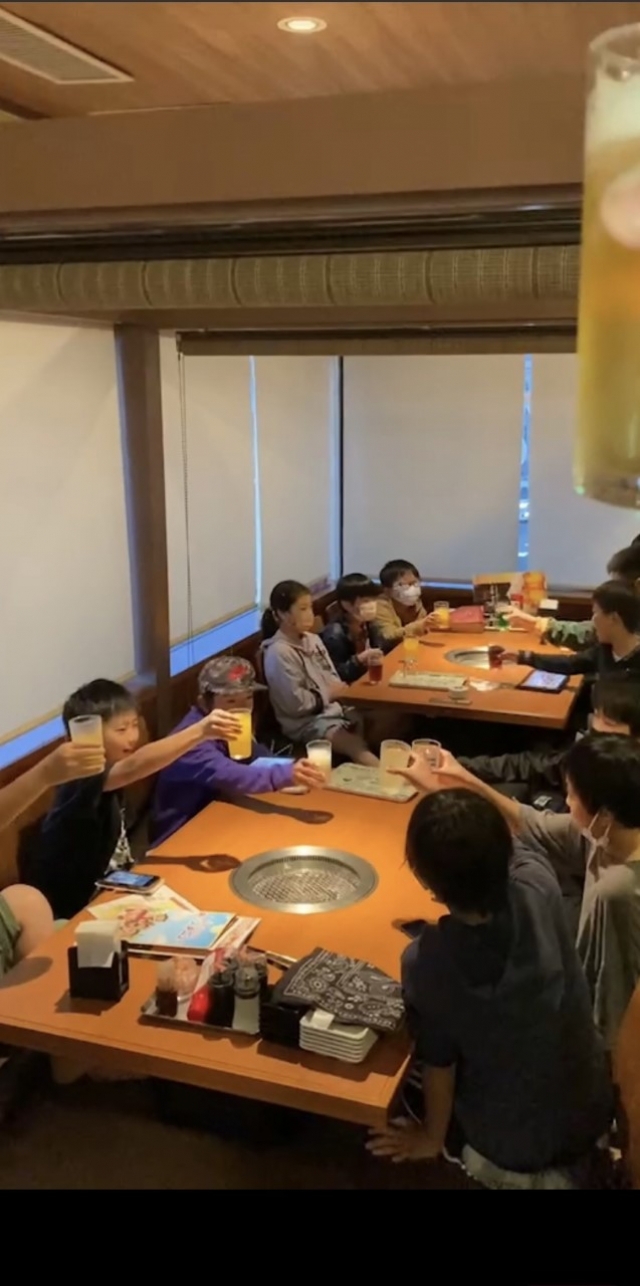 焼肉開始‼️ひたすら焼いてくれる選手。ひたすら食べる選手。ん⁉️役割分担❓楽しく、美味しいひと時を過ごしました。さぁ、6年生はカウントダウンだ。最後までみんなで走りきろうね。