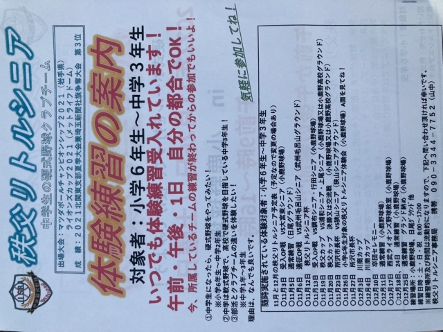 六年生のみなさんの参加お待ちしております⚾️
