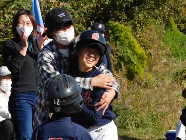 この試合、ランニングホームランが出ました!4年生から小倉少年野球部に入部してくれた選手。なかなか試合で結果が出ませんでしたが、あきらめずに一生懸命バットを振り続けた成果が出ました!その姿をチームみんなが見てきたこともあり、この試合で1番盛り上がりました☆ベンチに戻ったあと、お母さんと笑顔で抱き合う姿が「少年野球っていいな!」と思わせてくれました(^^)