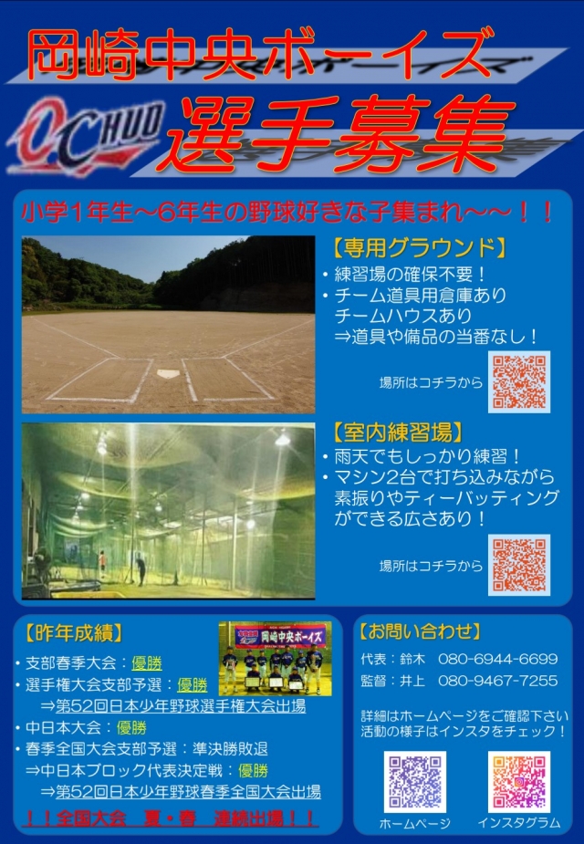 岡崎中央ボーイズでは新入団生を募集中です❗❗