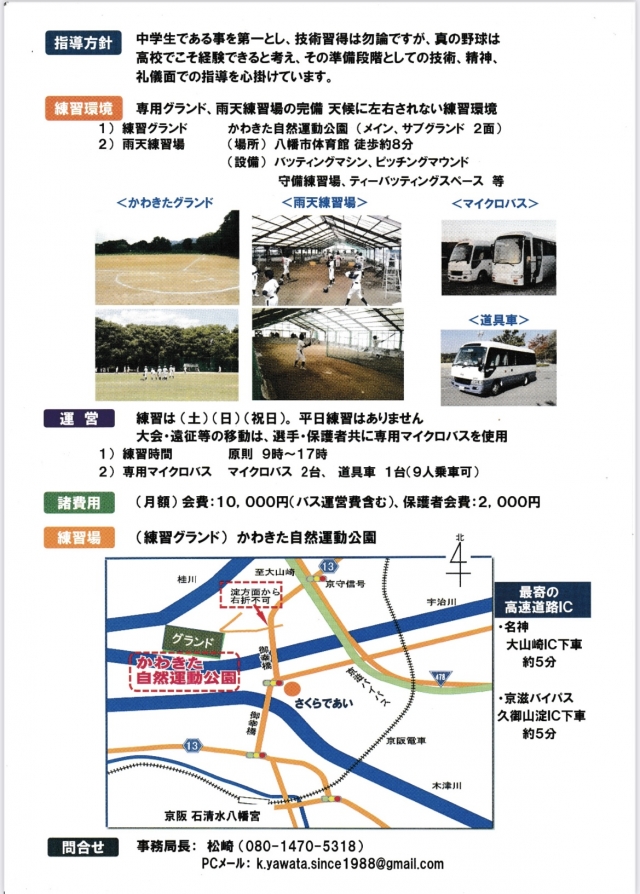 ◆場所 京都八幡シニア専用グラウンド(かわきたグラウンド)
