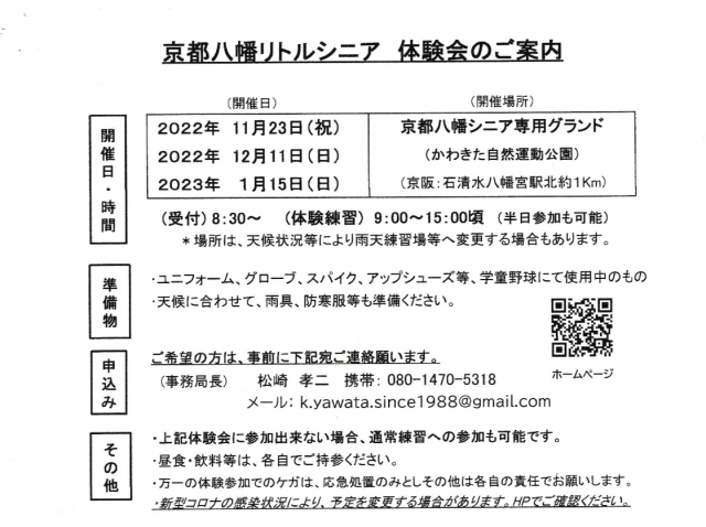 京都八幡リトルシニア体験会を開催いたします!