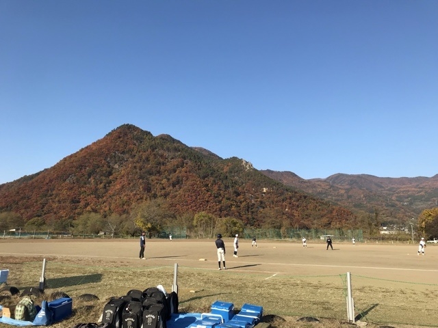 秋晴れの坂城グラウンドにて、三つ巴。