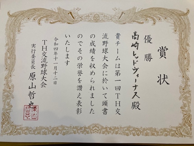 11月12日に長野県筑北村で長野フェアリーズ杯が開催されました❣️長野フェアリーズ様(長野県)、県央BLジャイアンツ様(新潟県)とのリーグ戦で行われました。初戦はフェアリーズさん、鬼門の初回を0点で抑えまずまずの立ち上がり(^^)この調子で行ってくれればと思いましたがさすがフェアリーズさん、隙をつかれ2失点。劣勢の続く展開を打ち破ったのは1年生の逆転スリーラン‼️これにウチのエースピッチャーも奮起し、最後まで投げ抜き2安打完投。3-2で勝利‼️2戦目はジャイアンツさん、この試合は一転打ち合いとなりました。初回に1失点しましたが、その裏ホームランを含め3安打で4得点。その後も攻撃の手を緩めず得点を重ねていきますが、ジャイアンツさんも猛攻撃❗️なんとか2投手で逃げ切り10-4で勝利しこれで全勝優勝が確定となりました‼️今大会の主催者の長野フェアリーズ様、またスタッフの皆様このような素晴らしい大会を開催して頂き本当にありがとうございました‼️今後とも宜しくお願いいたします‼️