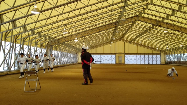 午前中は道具の片付けをして雨のため午後は室内練習場で体力作りをしました。